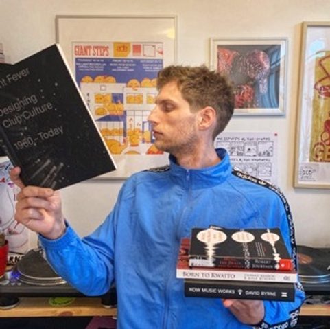 moved to Amsterdam for the music, he now contributes to the scene with his self proclaimed "great dance moves", writing a music blog for all the niche beat lovers and continues to always being fashionably early to all Rush Hour events. Together with his girlfriend 'Shady Lady' he usually (in non Corona times) co-hosts a monthly party called Hang Together complete with open decks as well as the weekly Dice Nights