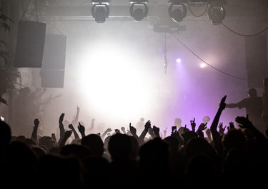 A large room flashing red, orange, yellow, pink, with barely enough room to move beside all the heaving bodies