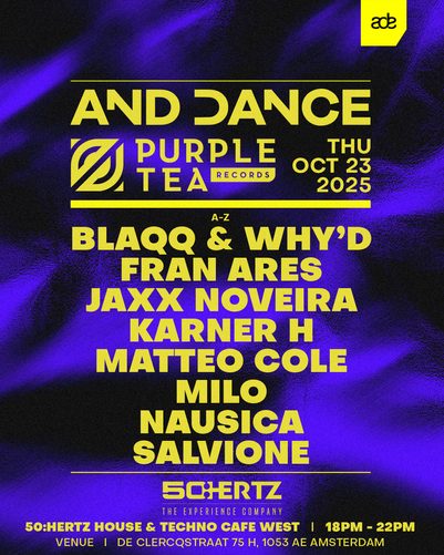 Purple Tea Records is returning to Amsterdam for its 7th consecutive year, and this time, they're joining forces with the renowned Spanish label And Dance to deliver a night of infectious rhythms and cutting-edge tech house. This exciting collaboration promises an unforgettable experience during one of the biggest weeks in electronic music. Stay tuned—our artist lineup will be revealed soon, and you won’t want to miss it.