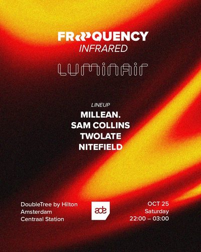 Freequency Infrared touches down at Luminair Amsterdam, the city’s most elevated sky bar escape. From 22:00–03:00, rise above the madness with high-voltage sets from Millean., Sam Collins, Twolate, Nitefield, and Freequency’s own. Expect pure house fire in an intimate setting.
