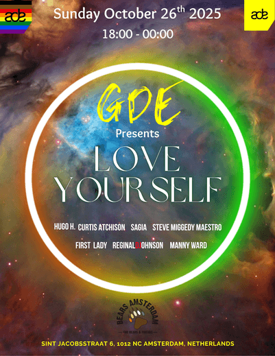 On Sunday, October 26th, 2025, the Gay Dance Event (GDE) will proudly close out the Amsterdam Dance Event (ADE) 2025 with a spectacular musical celebration of Diversity, Love, and Inclusion at Bears Amsterdam. This highly anticipated closing event will bring together attendees from across the globe to dance, connect, and celebrate freedom of expression through the universal language of house music. The night will feature electrifying