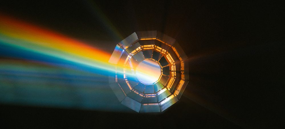 This idea is translated into a mirrored installation. The mechanically engineered installation moves its blades, diffusing light beams, and reflecting its surroundings in a chaotic and refracted image. It explores parallels between manufactured and organic movements and tries to liquefy the barriers. The work alternates from day into night, suggesting a perpetual motion.