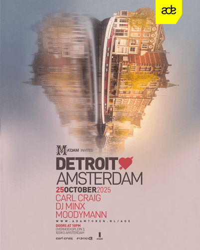 Expect nothing less than deep grooves, late-night heat, and the spirit of the Motor City pulsing through Amsterdam. This isn’t just a party — it’s a tribute to the birthplace of techno and a night you won’t want to miss.