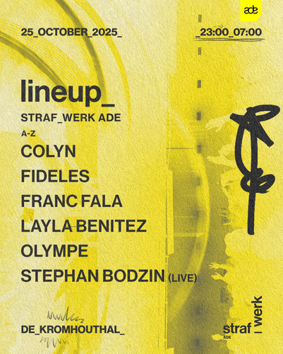 The ADE 2025 program is still being announced! View the already announced ADE Festival events and all participating venues and artists.